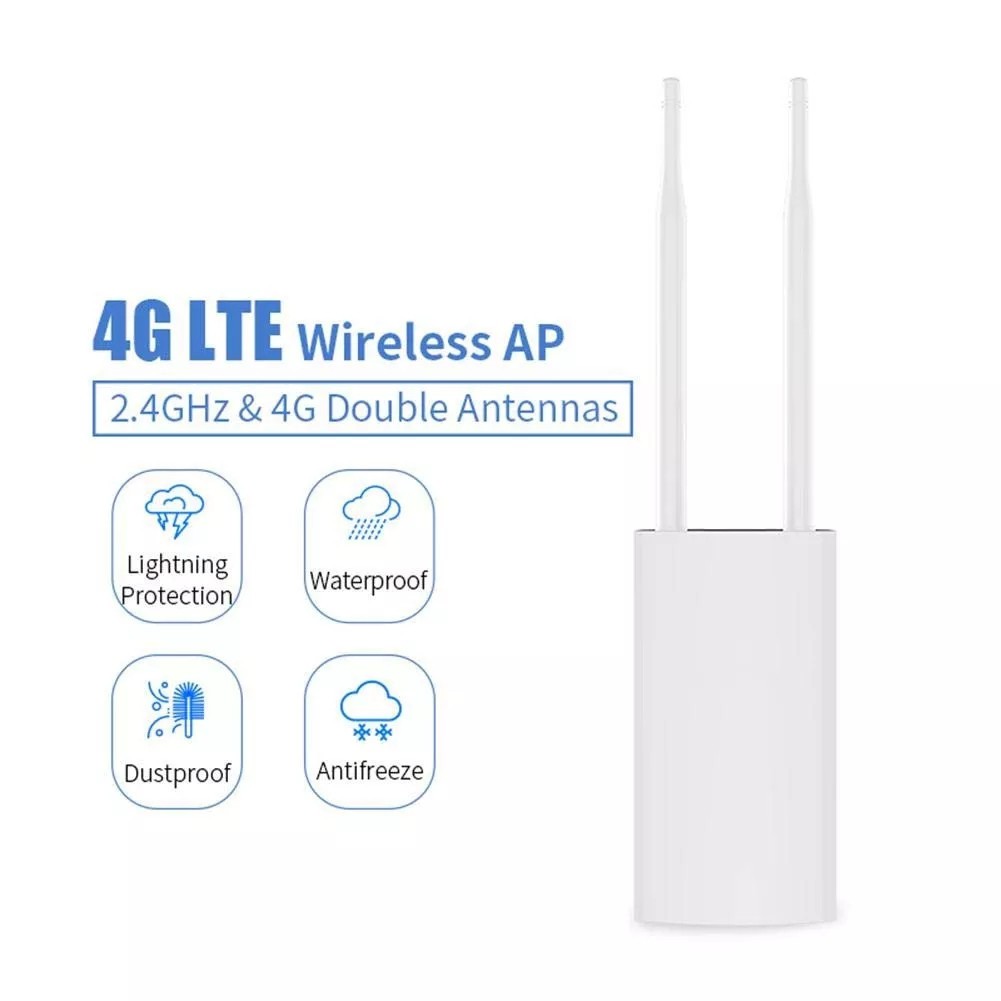 CPE903 - это мощный беспроводной маршрутизатор 4G с слотом для сим-карт 4G и сетевым процессором MIPS, это решение для корпоративных, домашних, корпоративных, офисных сетей Wi-Fi. Это также беспроводной наружный маршрутизатор 4G LTE с двойными внешними антеннами с высоким коэффициентом усиления, более стабильным сигналом для наружной установки. Он совместим со стандартом IEEE 802.11b / g / n, скорость передачи данных достигает 300 Мбит / с. Сигнал Wi-Fi более стабилен и длиннее диапазона. Он поддерживает 10 пользователей Wi-Fi одновременно.